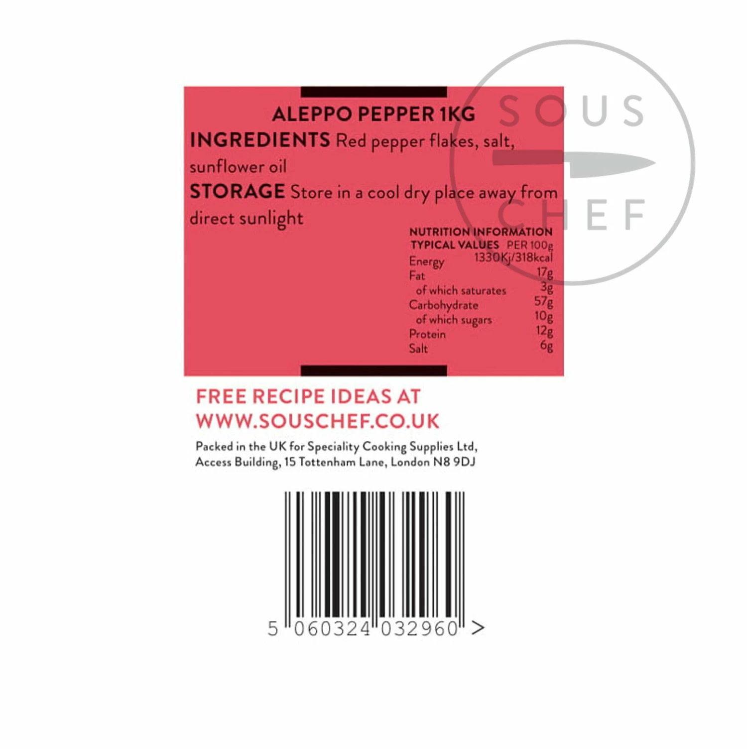This 1kg bag is ideal for catering purposes. A smaller 100g pot of Aleppo pepper is also available.
