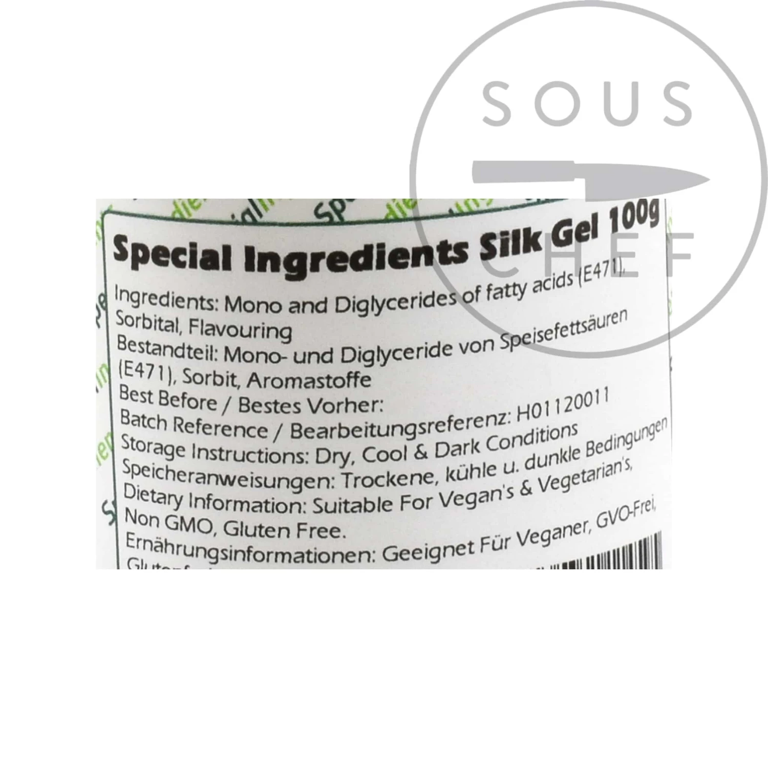 Silk gel gives your homemade ice cream and fruit sorbets a smooth mouthfeel. Adding a small amount of silk gel to your fruit or custard base produces a silkier final texture and consistency which is easier to scoop and serve.