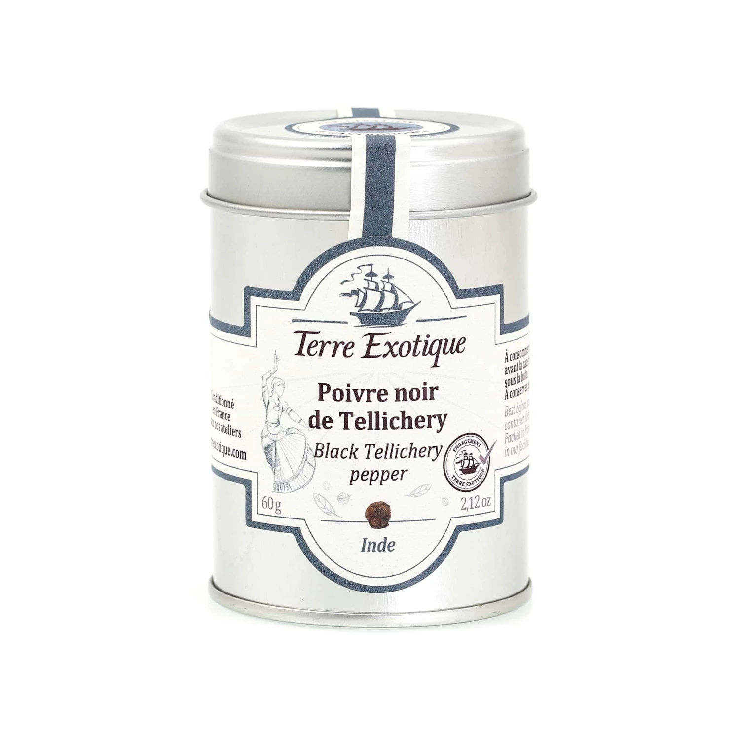 Terre Exotique’s black Tellichery pepper is an Indian spice with prominent vegetal aromas and a subtle spice. Cultivated in Thallassery, a town on the spice coast of Kerala, this pepper is a popular all-rounder to pair with fish, meat and vegetables. With fresh aromas of citrus fruits and a subtle spice, grind this pepper and use it when cooking roast chicken, baked goat’s cheese or add it to fragrant fish curries.