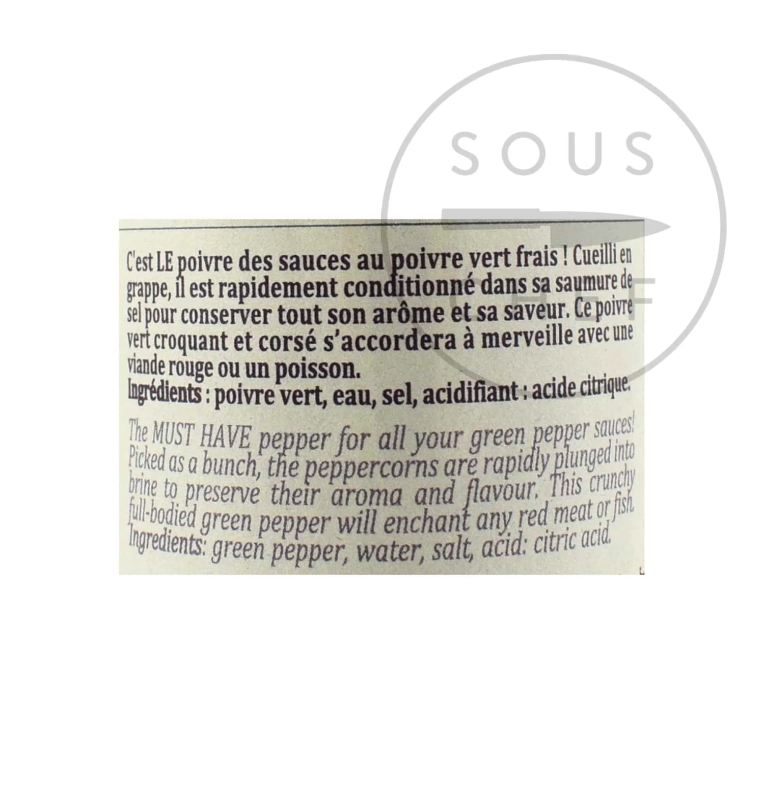 Ingredients: Green Madagascar pepper, water, salt, acid: citric acid.