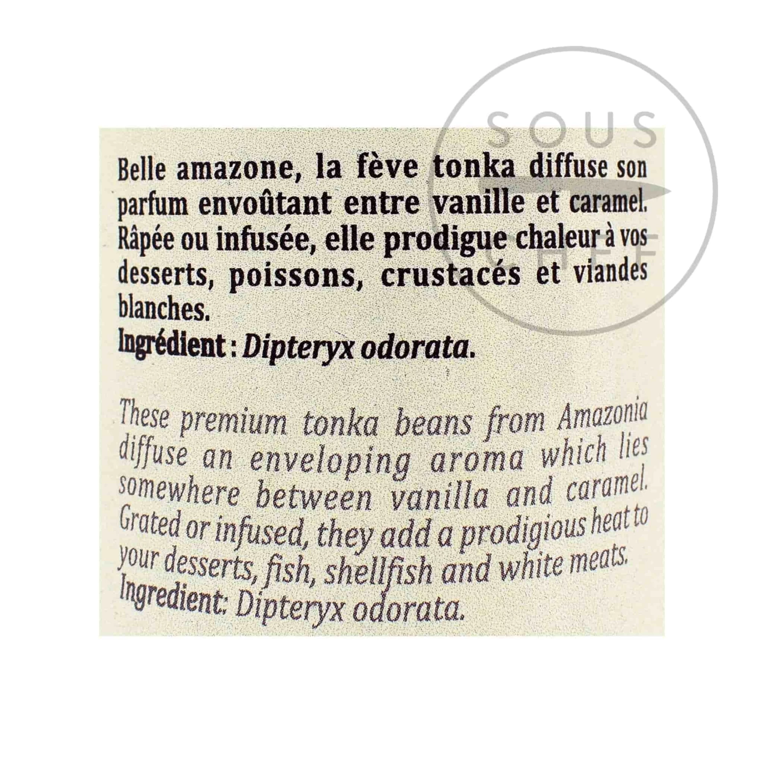 Tonka beans grow on the Cumaru tree, and are the seeds of a mango-like fruit. These oblong seeds are dried for a year, then submerged in alcohol for 24 hours. After this process, the beans are dried again, giving them their black and wrinkled appearance.