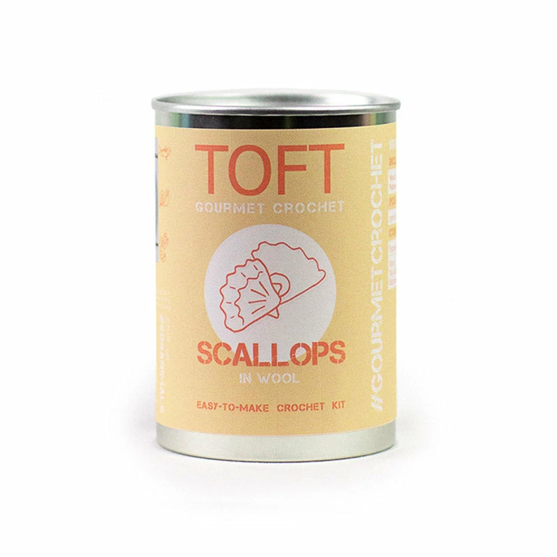 Toft scallops in a tin gourmet crochet kit is a crafty gift for seafood lovers. Each tin comes with yarn and an easy-to-follow pattern for making 4 sweet crocheted scallops.