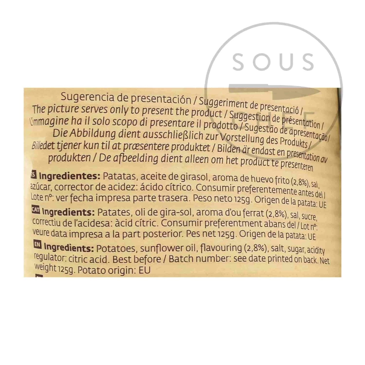 Ingredients: Potatoes, sunflower oil, flavouring (2.8%), salt, sugar, acidity regulator: citric acid.