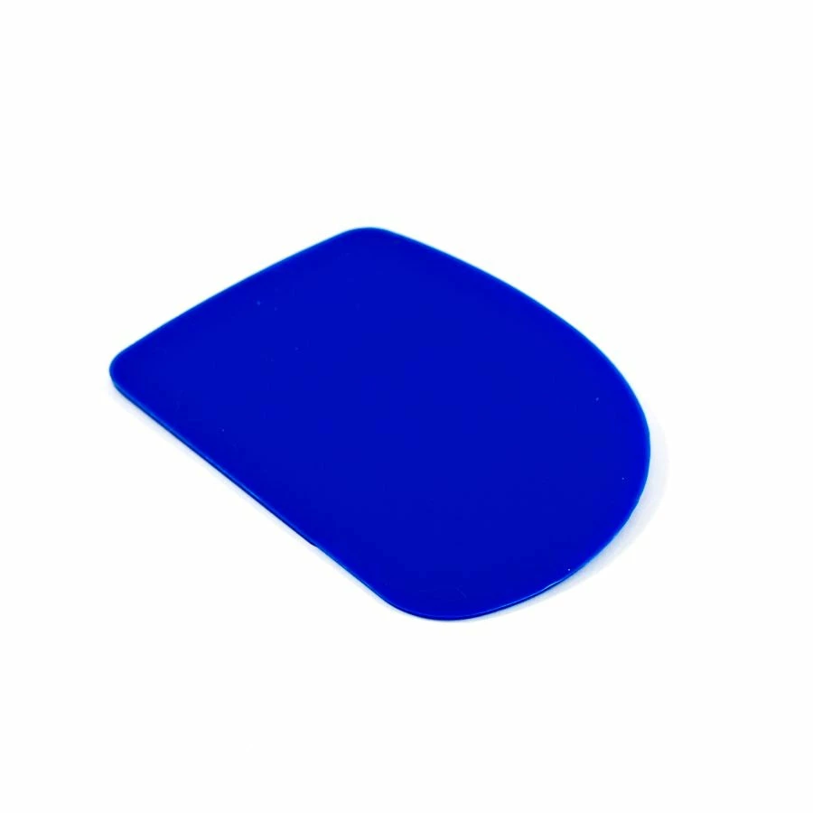 This plastic dough scraper, also known as a dough cutter, bench scraper or dough knife, is an effective way of cutting and lifting dough to move it from surface to surface. The curved edge of the flexible dough scraper means that it also works to scrape dough and pastry out of mixing bowls, or even use to help knead wet dough. A dough scraper can also be used to scrape the bottom of bowls containing creams, pastes and icings- it is the pastry chef’s best friend. The plastic tool is kinder to work surfaces than metal knives and spatulas – a simple, but useful device.