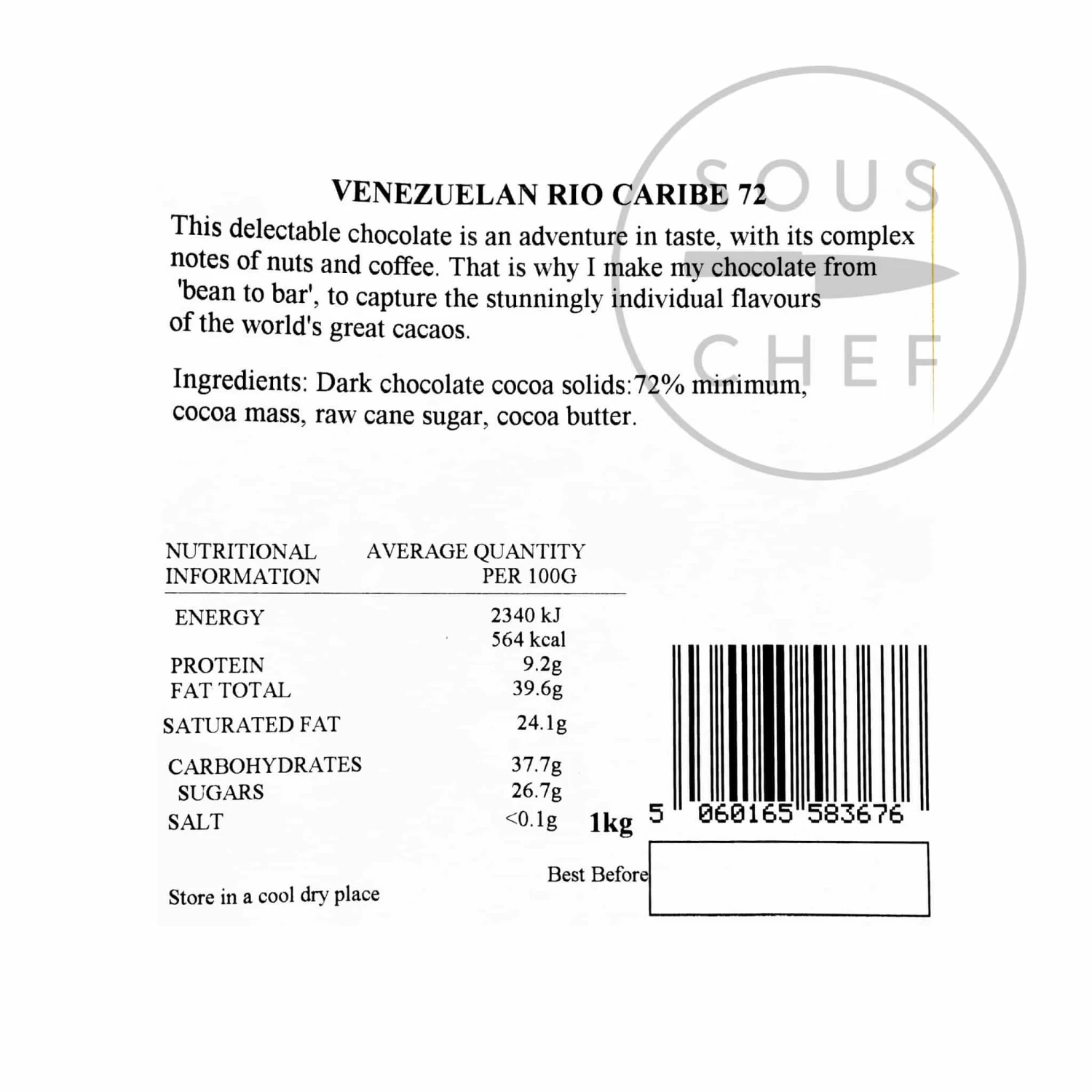 Willie’s Cacao Rio Caribe 72% Venezuelan chef’s drops lend nutty, coffee notes to brownies, cookies and cakes. This single estate couverture dark chocolate has a wonderfully rich depth of flavour, while the drops are easy to weigh and quick to melt, excellent for baking recipes.Â