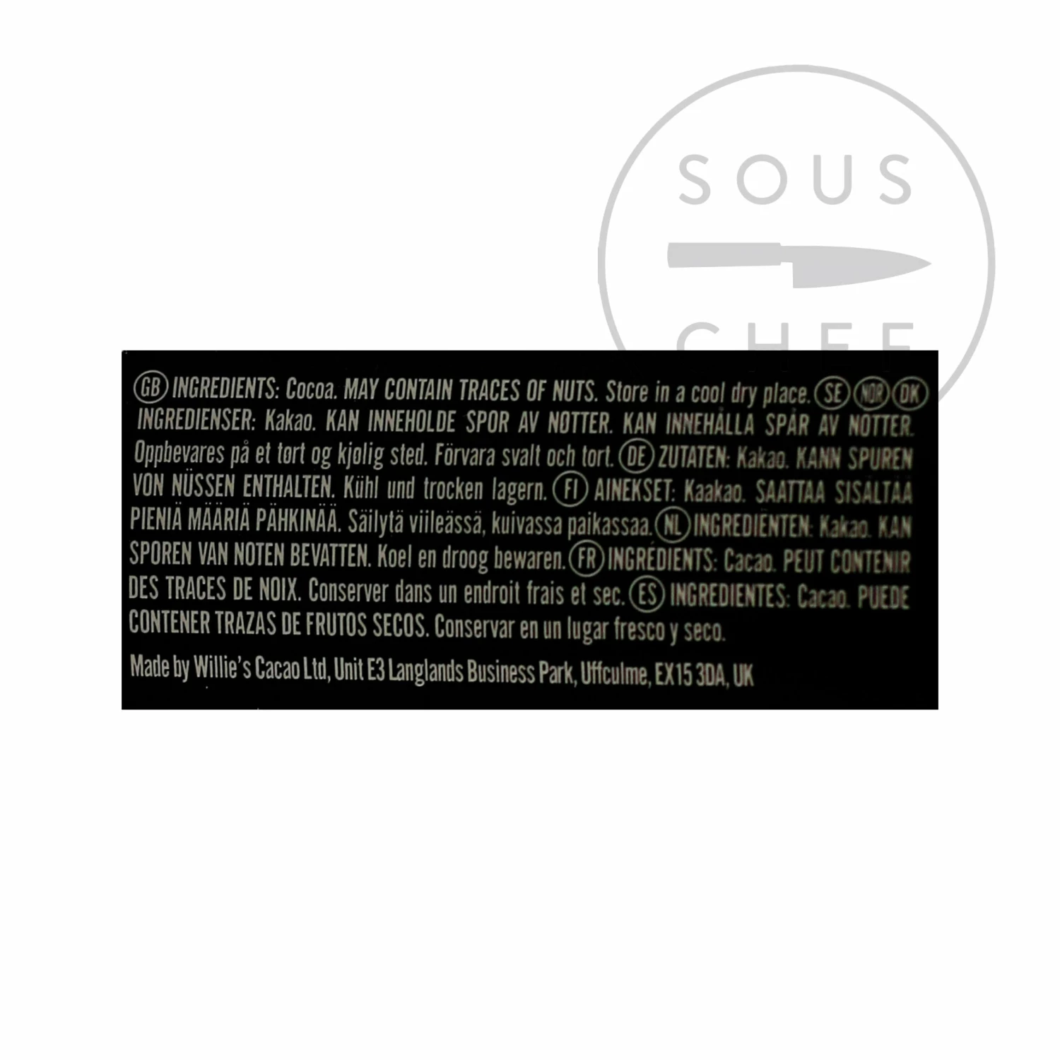 Willie’s Cacao Venezuelan black Rio Caribe 100% cooking chocolate adds intensity to gravies, casseroles and mole sauces. 100% pure cacao, it has complex nut and coffee notes. Grate this single-estate chocolate block into rich, meaty dishes, or use shavings to decorate indulgent chocolate cakes.